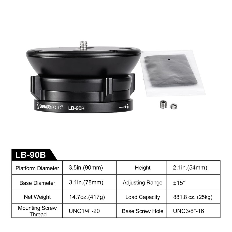 - Safe and steady: The overall height of LB-90B is only 1.89in.(48mm), with low gravity center, very steady and safe. Compatible with equipment of high gravity center, such as 6x6, 6x7 medium format camera or view camera.