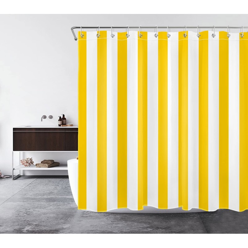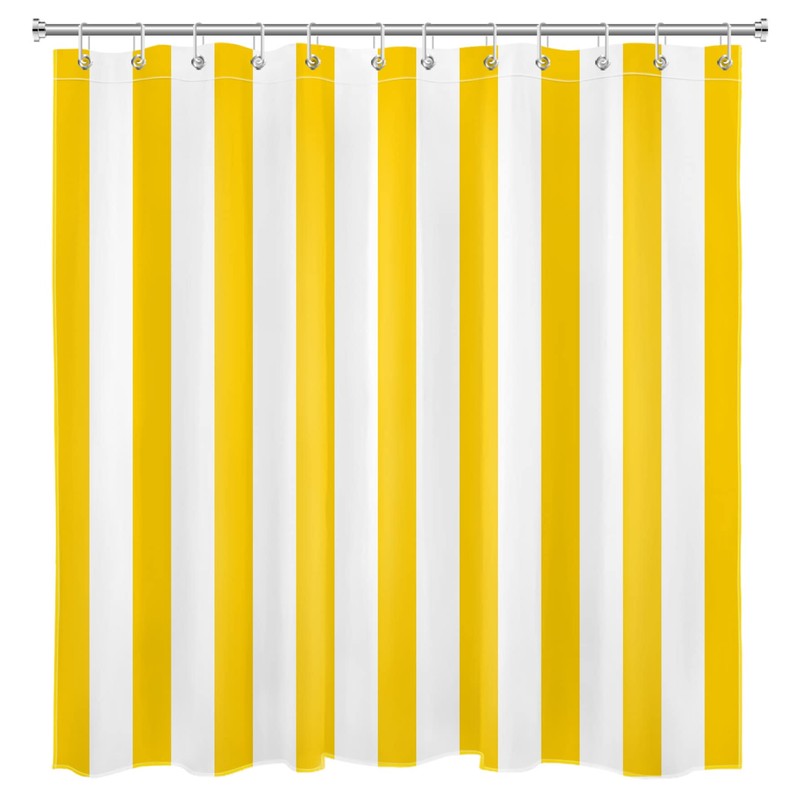 LB Yellow White Striped Shower Curtain, Simple Geometric Art, Anti-Mould, Waterproof Bathroom Curtains, Minimalist Polyester Fabric Bathroom Curtain with Hooks, 180 x 180 cm