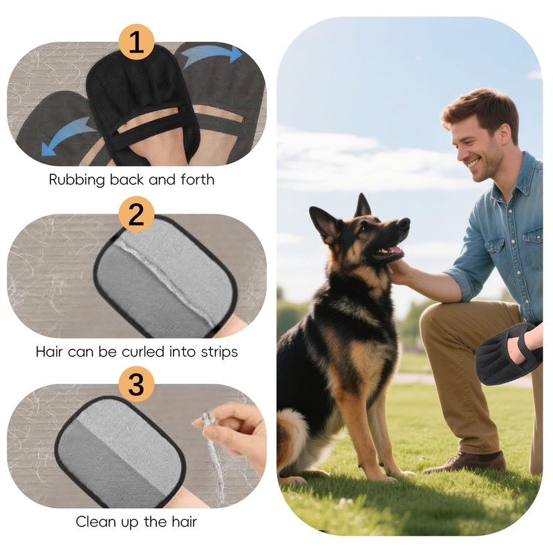 - transform cleaning into bonding time! gentle enough for direct pet use, this dual-purpose glove removes loose hair while massaging your dog or cat during grooming sessions!