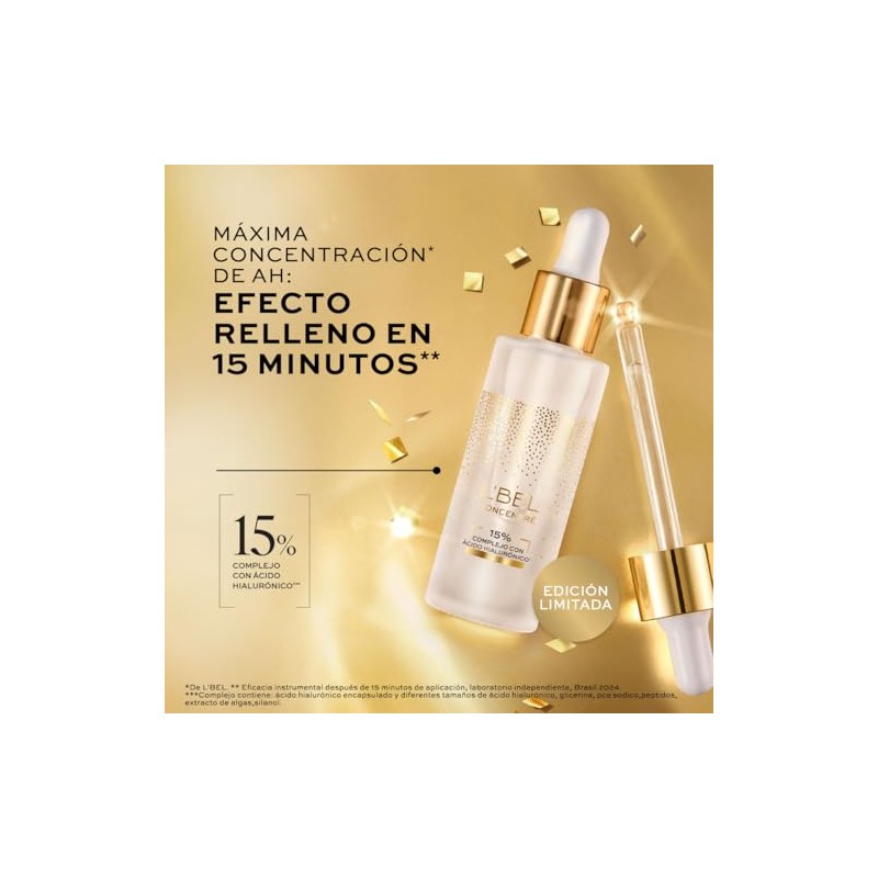 🌟 ⭐ L'BEL - Concentré Sérum Relleno de Arrugas 15% Ácido Hialurónico Edición Limitada, Reduce Arrugas y Efecto Relleno, Piel Más Lisa e Hidratada, Uso de Día y de Noche ⭐ 🌟