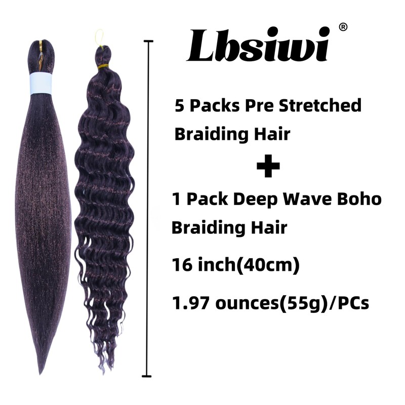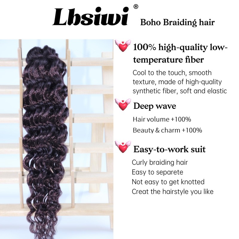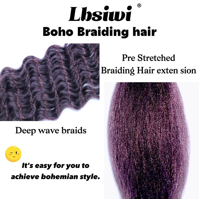 Lbsiwi Dark Burgundy Braiding Hair Boho Braids 16in Pre Stretched Curly Deep Wave Bohemian Braiding Hair Ez Braid Synthetic Knotless Extensions Hairs (#99J)