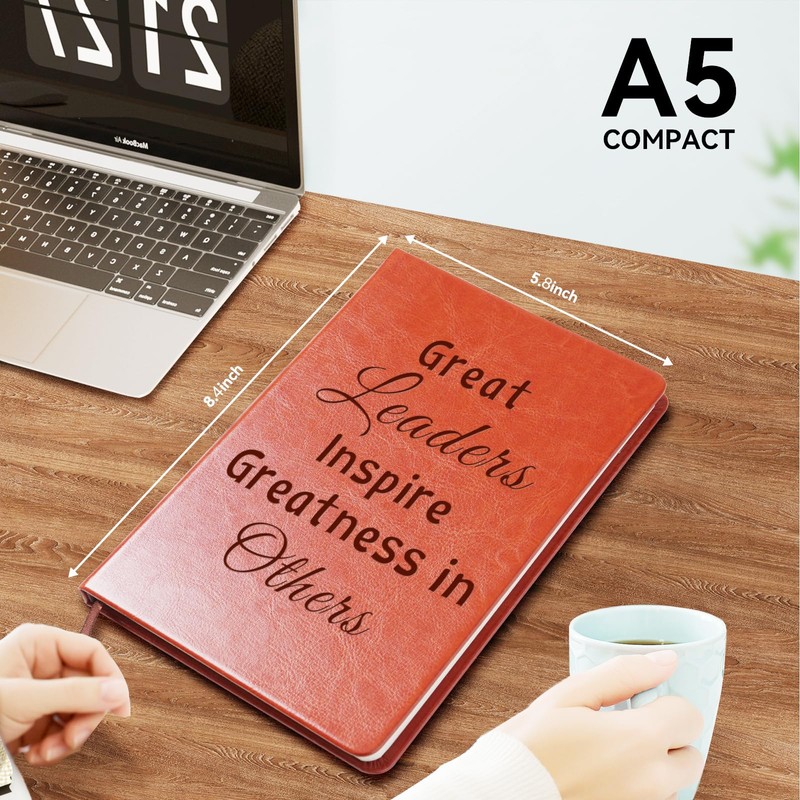 - The leather notebook cover is emblazoned with gratitude and a touching quote, "Great leaders inspire greatness in others." A leader is someone whose actions inspire others to dream more, to learn more, to do more, to be greater. This leather notebook is the perfect gift for anyone you want to thank.