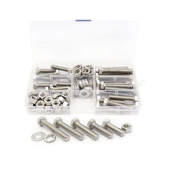 - 4.Contains: 25 pieces bolts, 25 pieces nuts, 30 pieces flat washers and 30 pieces spring washers, a total of 110 pieces.
