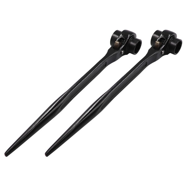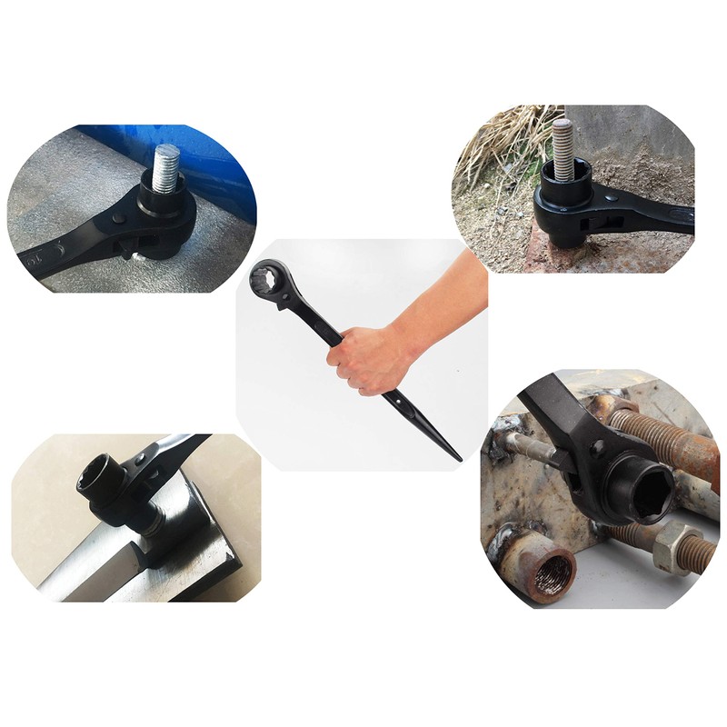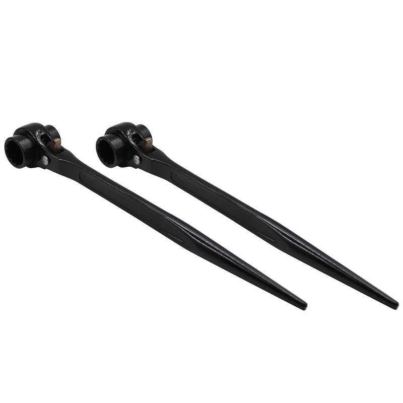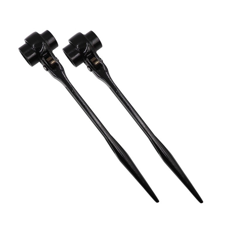 **LBY 22-24 Pointed Tail Ratchet Quick Wrench, Scaffold Podger Ratchet Spanner, Ratcheting Socket Wrench (Black)** **● Product:** \- 22-24mm (330mm) \- Wrench aperture:22/24mm \- Total length:330mm \- Material: 55# steel - Main Color:black \- Surface treatment:blackening \- Wrench shape: single head wrench, \- Wrench head type: hexagon socket **● Package:** \- 22-24 (330mm) - 2pcs **● Description:** \- Ratchet wrench,metric double openings head and tapered end to line up bolt holes design to make it work with bolts fast and easy . \- The product is made of high-quality steel forging, durable. \- The whole head adopts two-way conversion design, which only needs 5° to rotate, It is more convenient when the maintenance space is narrow. \- Integrated forged handle, comfortable and durable, can be hung, easy to custody. \- Double sized hexagon spanner with ratchet mechanism, ideal for scaffolding and construction. \- This is a wrench set, including two pieces. \- Widely used in machine repair, screw reinforcement, car repair, etc. **● Note:** \- The surface of the product is coated with anti-rust oil. Wear gloves when using to prevent soiling your hands.