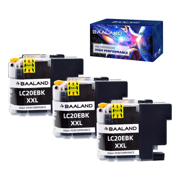 LC20BK XXL LC20E Black Ink 3-Pack Super High Yield Compatible Replacement for Brother LC20E Ink Cartridge Use with Brother MFC-J985DW, MFC-J775DW, MFC-J5920DW Printer