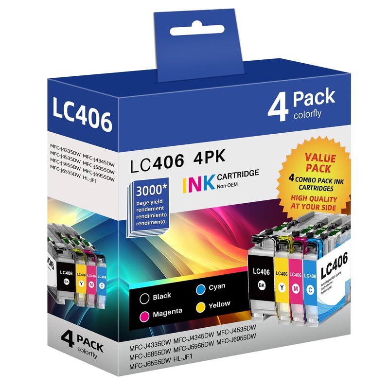 - Package Included: 4 packs LC406 ink cartridges for Brother printers (1 x black LC406 ink, 1 x cyan LC406 ink, 1 x magenta LC406 ink, 1 x yellow LC406 ink)