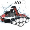 Lcckyeng Rechargeable Headlamp, 8 LED 18000 Lumen Super Bright Waterproof Headlight with Red Lights, 8 Light Modes Head Lamp for Emergency Light Outdoors Fishing Hiking Camping Running (1, Black)