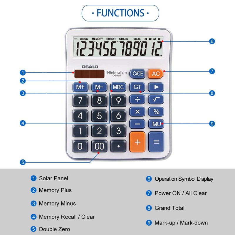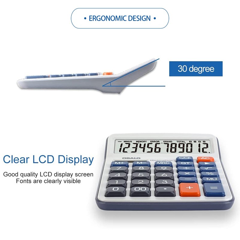 - 【30°角度付きデスクトップ電卓】 このデスク電卓の画面は正反対側にあり、すべての計算を読みやすくします。 3 色の分離された大きなボタン。ABS樹脂製で、指のカーブに合わせて、押すたびにより正確になり、より効率的に作業できます。