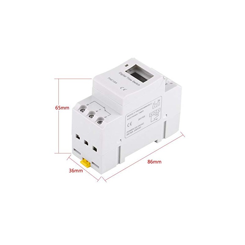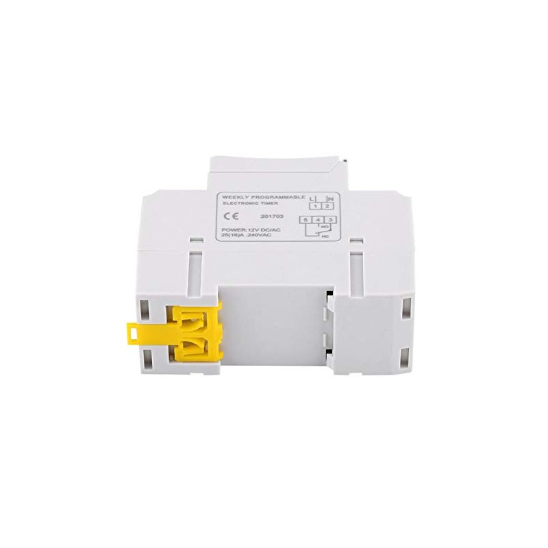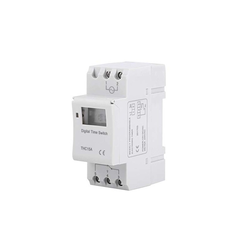- (Suitable for a wide variety of situations) Suitable for controlling household appliances such as street lights, neon lights, production equipment, broadcast TVs, etc. Advance pre-setting done one week ago. Digital electronic universal time switch, daily and weekly programs Repeat the program with 16 ON and 8 OFF settings. Latest setting accuracy. The LCD displays real time / hours / minutes and ON / AUTO / OFF. DIN rail mounted
