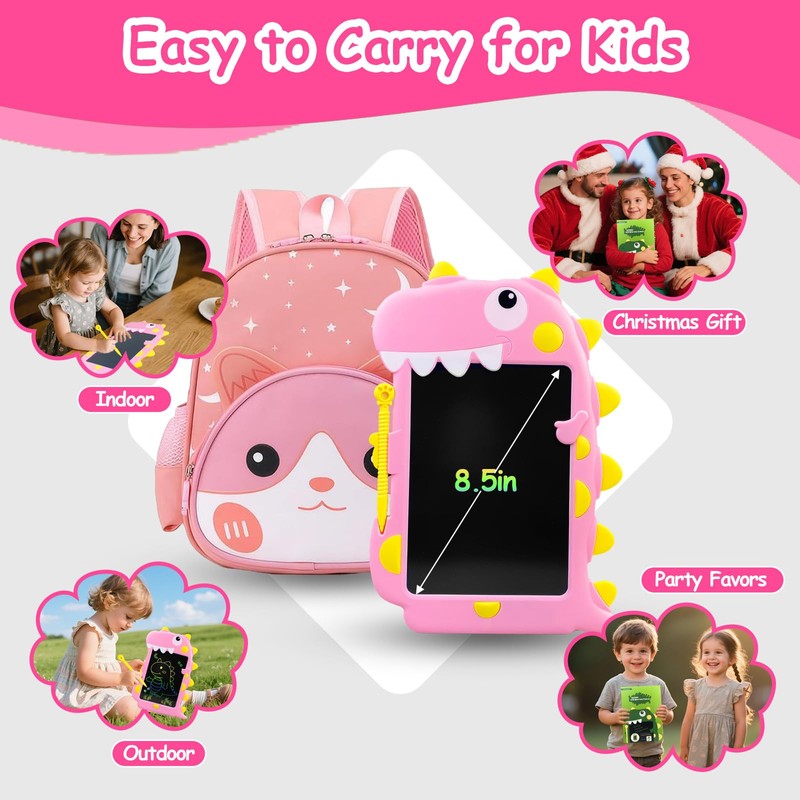 LCD Writing Tablet for Kids - 8.5 Inch Color Screen Doodle Board Erasable Toddler Drawing Pad Educational Learning Toy for 3 4 5 6 7 Year Old Boys & Girls Stocking Stuffer(Pink)