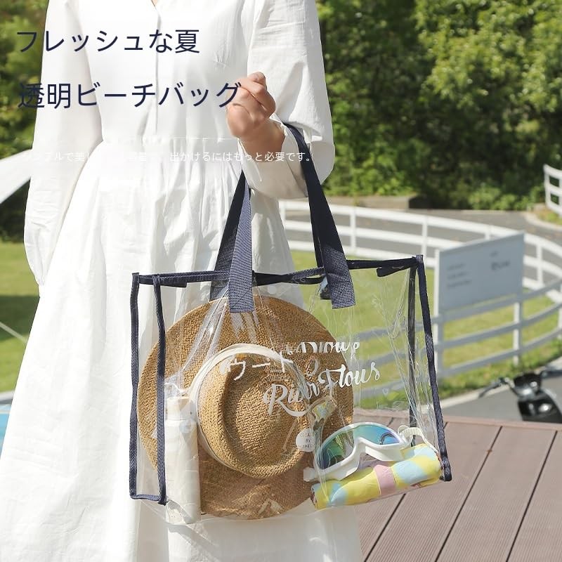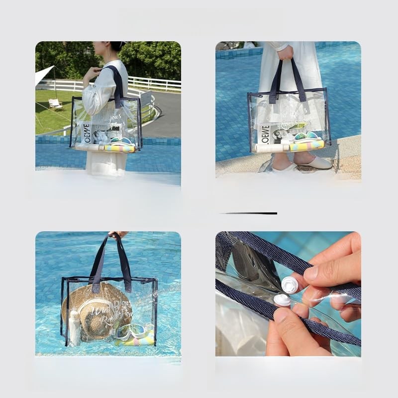 LCDesign Plastic Bag, Pool Bag, Beach Bag, Hot Spring Bag, Clear Bag, Large Capacity, Waterproof, Transparent, Tote Bag, Cute, Simple, Summer, Sea, Shoulder Bag, Durable, Waterproof, Adult, Stylish,