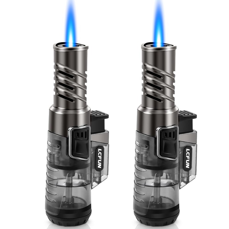 - LATEST DESIGN TORCH LIGHTERS: LcFun 2 pack torch lighters are newest designed which comes with a nice box. This would be a perfect present choice for friends & family. NOTE: ALL LIGHTERS ARE SHIPPED WITHOUT BUTANE. PLEASE FILL WITH FUEL BEFORE USE