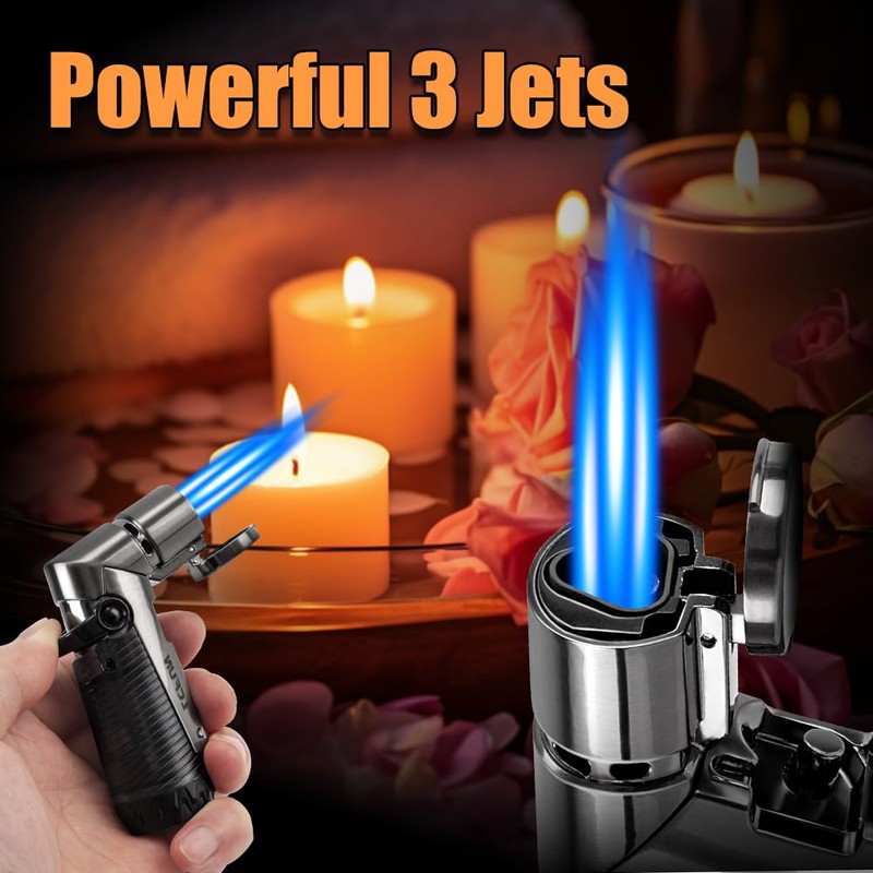 - POWERFUL TRIPLE JET FLAME: LcFun torch lighter consist of 3 burners which can produce powerful and consistent ignition, highly wind-resistant triple jet torch light faster and more efficiently.Just a few seconds, you can enjoy your cigars. NOTE: ALL LIGHTERS ARE SHIPPED WITHOUT BUTANE. PLEASE FILL WITH FUEL BEFORE USE