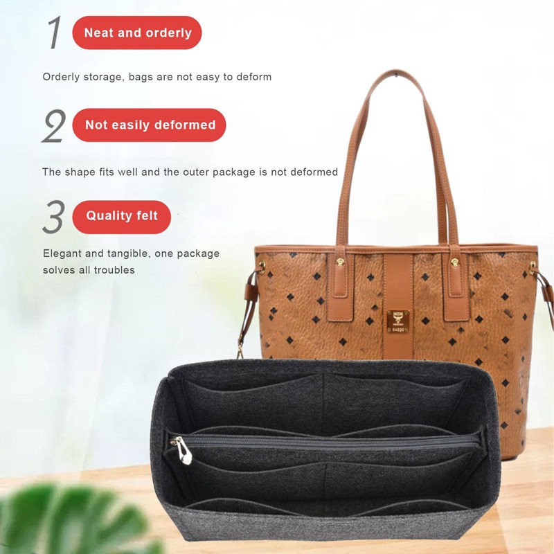 - Felt insert bag organizer keeps your tote in shape; you can use it as a small item organizer and it as a makeup bag organizer to collect messy makeup.