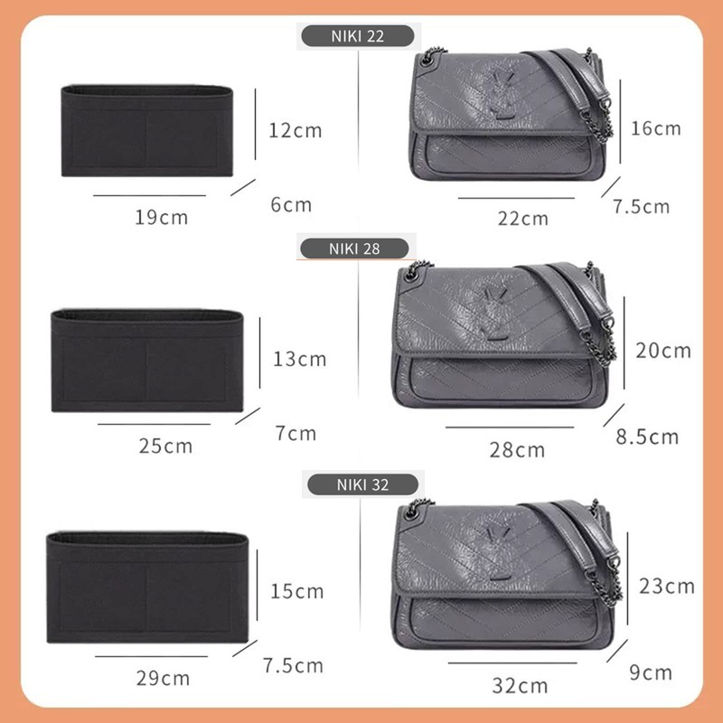 • Specially designed for NIKI 22 28 32 wanderer bag, Size: S=7.5 * 2.36 * 4.7 inch/M=9.8 * 2.7 * 5.1 inch/L=11.4 * 2.95 * 5.9 inch/. The high-grade felt material is used to better match the luxury bag, protect the lining, and tidy up debris, making your bag more practical and fashionable.
