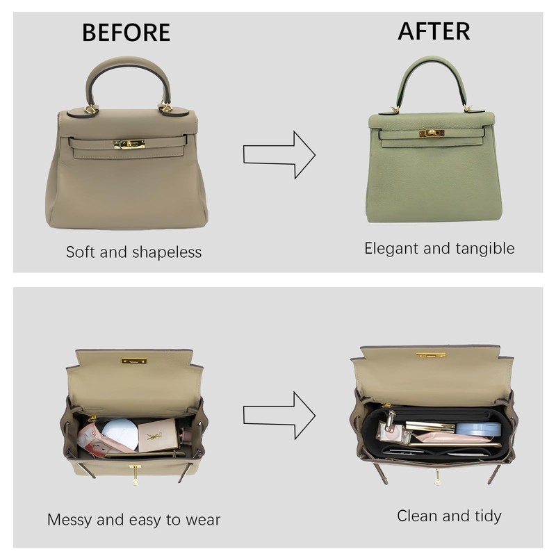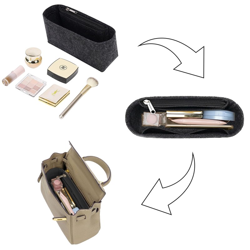 - Felt insert bag organizer bid farewell to messy bags,and prepare enough pockets to store messy makeup, organized and keep Purse clean and tidy. It can also be used as a container for household items.Pack up small things on the desktop