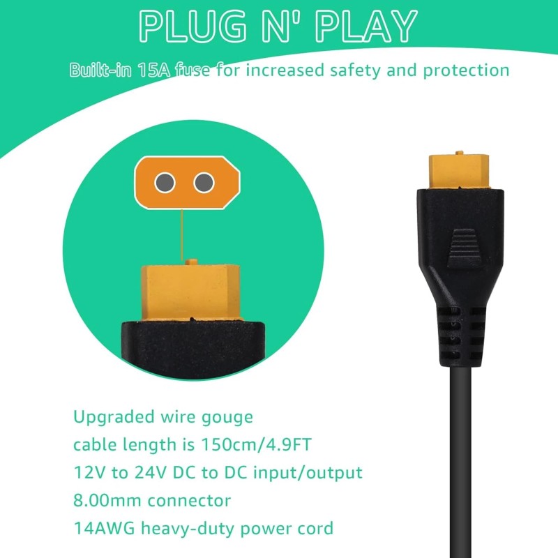 - Product specifications: Input / Output: 12v to 24v Dc to Dc,Wire Gauge: 16 AWG Heavy Duty Power Cable,Power Cable Length: 1.5m / 4.9 feet Built in safety fuse with good safety quality