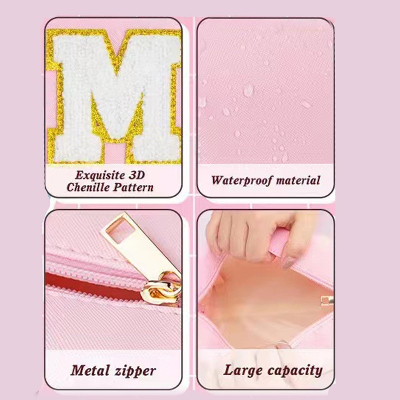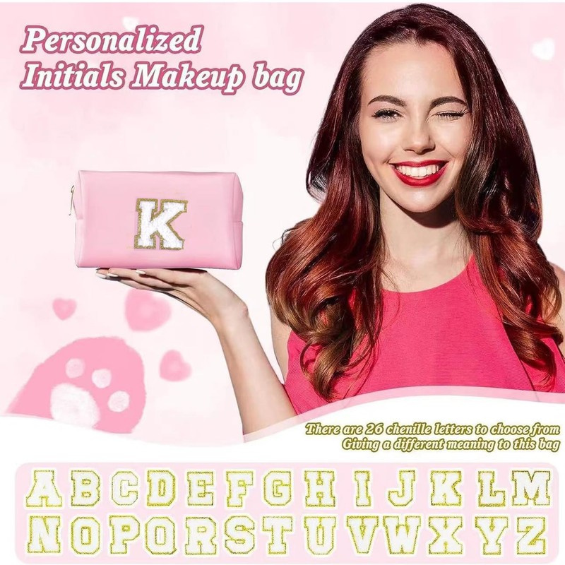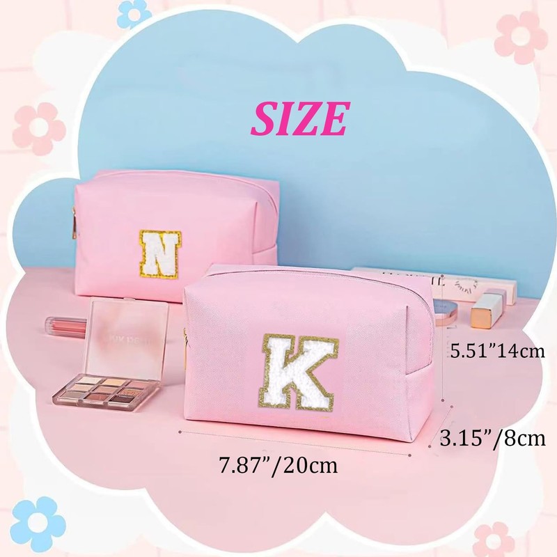 - Preppy options: Designed with glitter border letter K, this pink makeup pouch is eye catching and creates a fashion and vivid atmosphere.It can be used not only as your own toiletries bag indoor, but also as a portable storage bag ourdoor.
