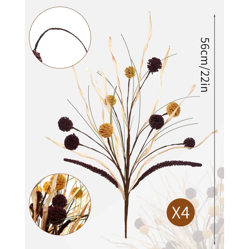 - ✨ Harvest Hues Perfected: Each 19" stem packs 5 plum billy balls + 4 cream craspedia + 2 berry spikes + faux wheat leavs. Ultimate fall stems for wreaths/garlands without bulk buying!