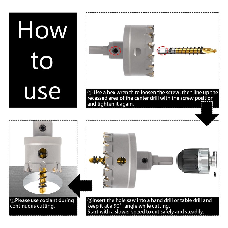 - Carbide Hole saw set apply : Bench Drill, Magnetic Drill, Gun Drill, Non-impact mode Percussion drill, CNC drilling machines. Use coolant for continuous cutting.