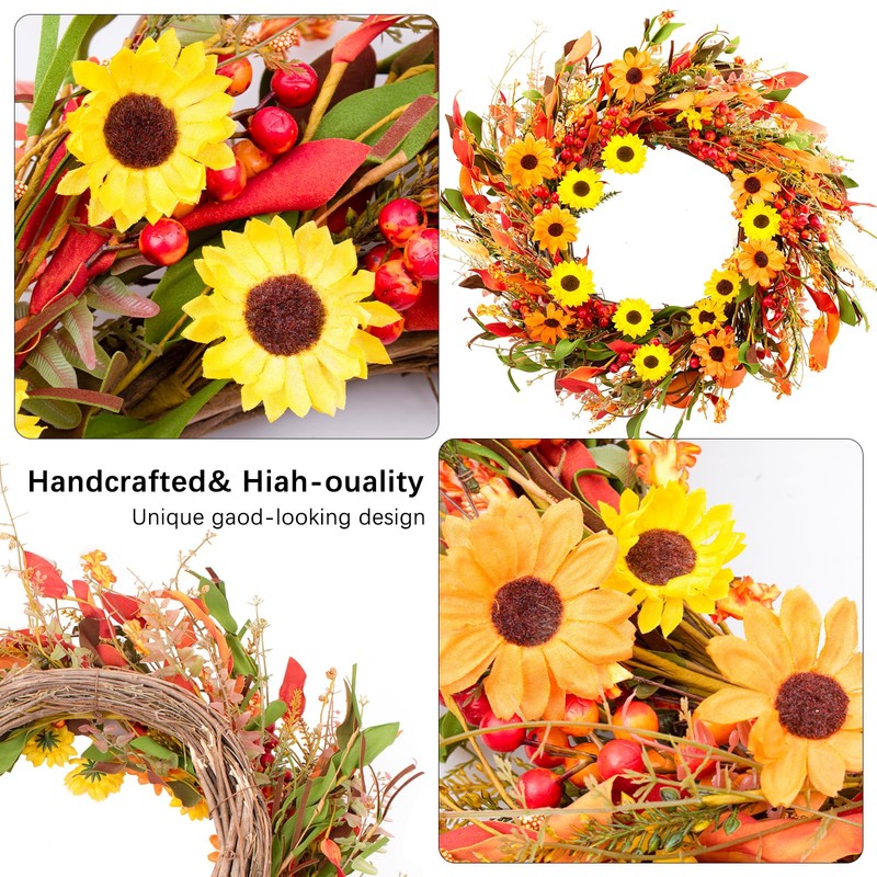 - Versatile: This wreath is suitable for all seasons, holidays, and occasions, including Summer, Autumn, Fall, Winter, Spring, Halloween, Thanksgiving, Christmas, and other festive events.
