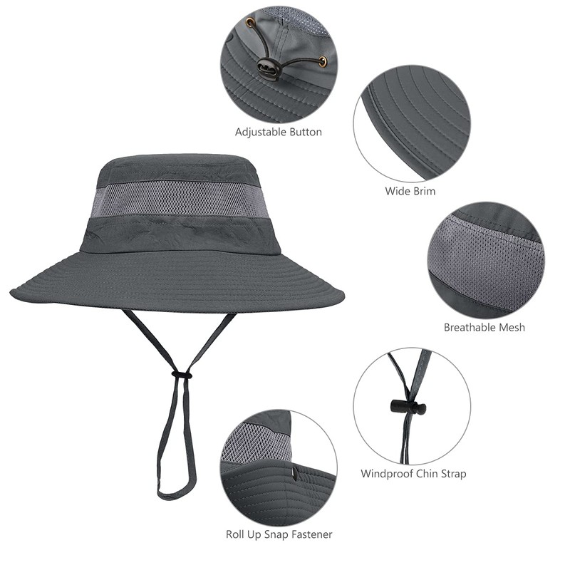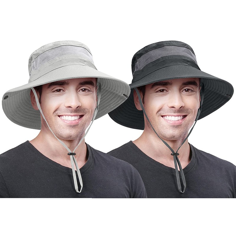 LCZTN 2 Pieces Boonie Sun Hat for Men & Women Bucket Hat with UV Protection UPF 50+ for Fishing,Hiking,Safari & Gardening (Dark Grey&Light Grey)