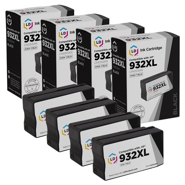 LD Remanufactured Ink Cartridge Replacement for HP 932XL CN053AN High Yield (Black, 4-Pack) Compatible with HP Printer Models HP OfficeJet 6100 e-Printer