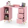 LDAILY Moccha Nail Desk, Manicure Table w/ 3 Drawers & 2 Storage cabinets, Wrist Rest, 8 Metal Legs, Acetone Resistant Nail Desk for Nail Tech, Nail Table Station for Salon Beauty, Home (Pink)