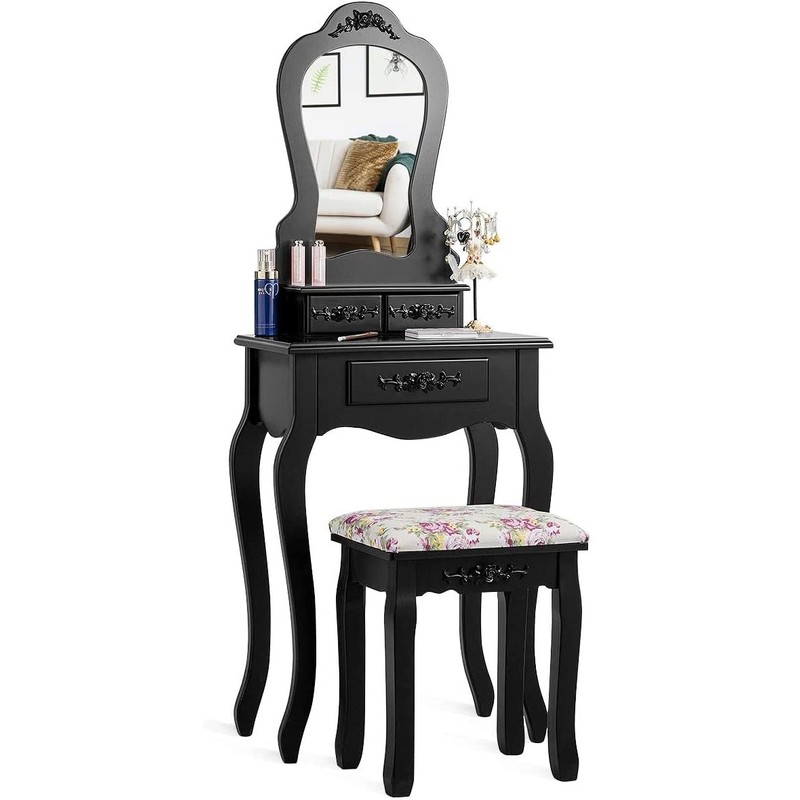 - 【Elegant & Clear Makeup Mirror】Designed with a high-definition makeup mirror, our vanity table can fully and clearly show your beauty and bring you an extremely happy makeup experience. Moreover, the black mirror frame with exquisite carving looks more elegant and luxurious.