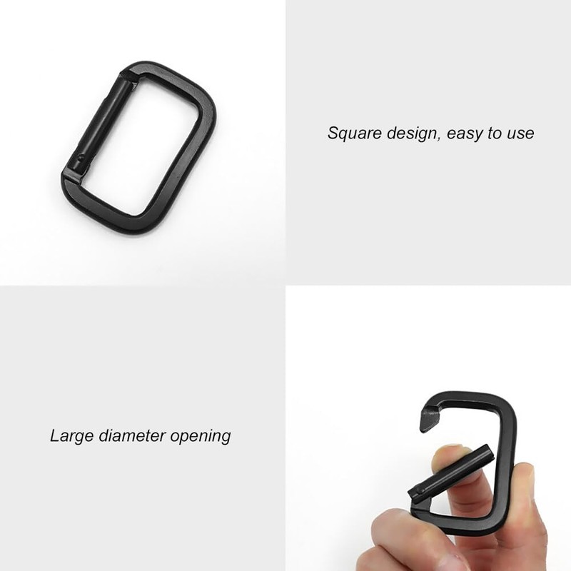 - Application: This square carabiner is versatile and is ideal for attaching ropes, water bottles, backpacks and tents. A must have for outdoor enthusiasts. Not suitable for climbing or as a safety chain