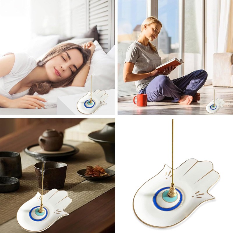 LDBKLGHJ Ceramic Incense Holder 3 in 1 Brass Incense Holder for Sticks and Incense Sticks Zen Decor with Hand of Evil Protection Spiritual Home Decor
