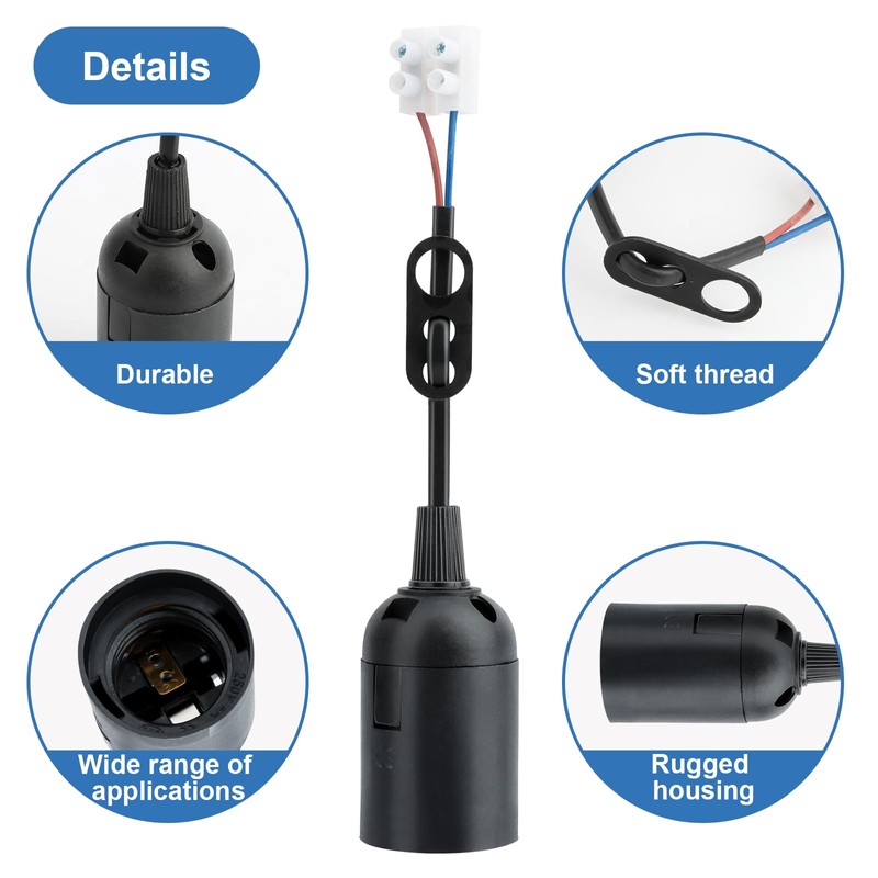 • Material - Die E27-Lampenfassung besteht aus hochwertigem Kunststoff und die Armaturen sind aus hochpr?zisem Messing, das isoliert, hitzebest?ndig und korrosionsbest?ndig ist und f??r eine lange Zeit verwendet werden kann, korrosionsbest?ndig und die E27-Lampenfassung kann vor Stromschlag sch??tzen.