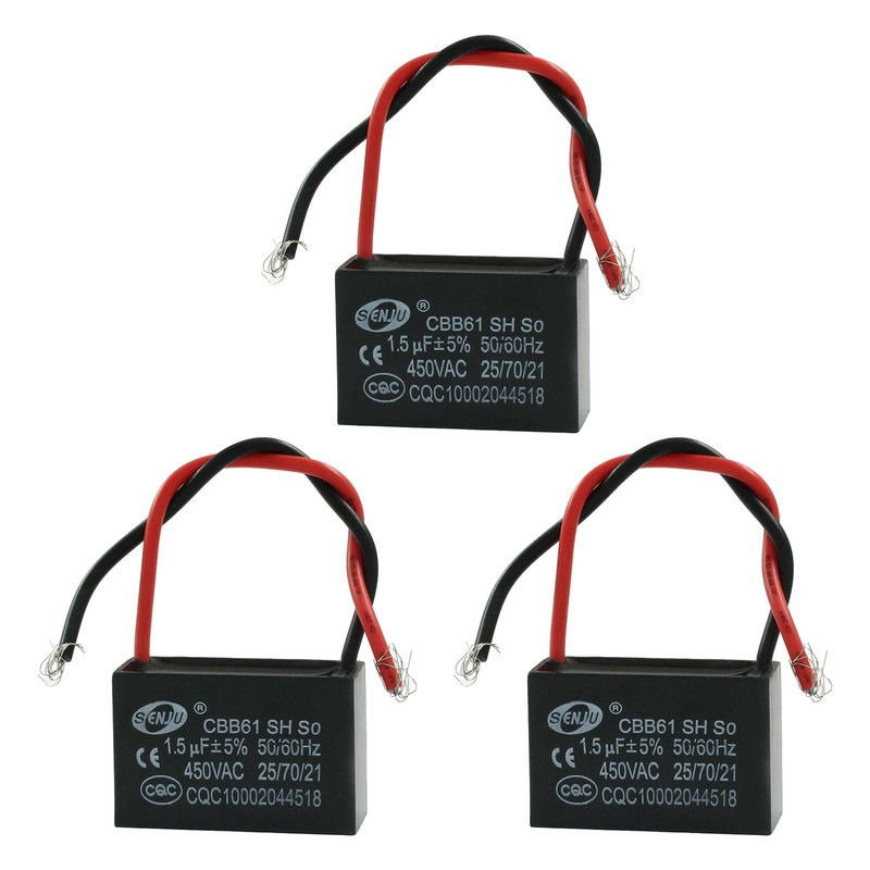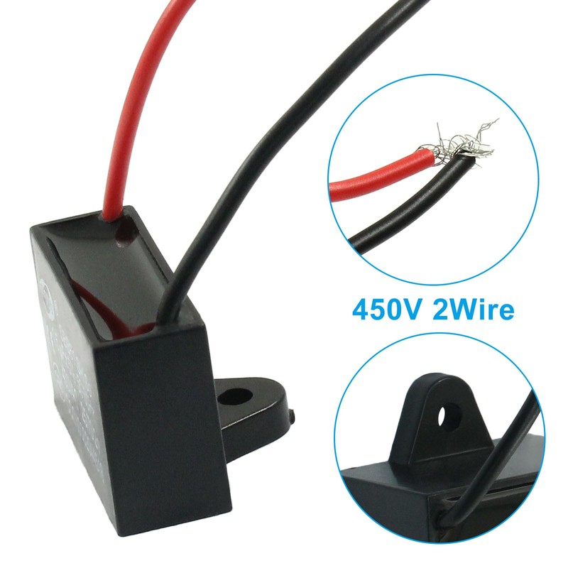- Wide Compatibility: Perfectly suited for a variety of applications, the 2-wire motor run capacitor can be used in ceiling fans, air exchange fans, wall-mounted fans, air conditioning units, washing machines, and micro water pumps. Compatible with both 50Hz and 60Hz AC power systems.