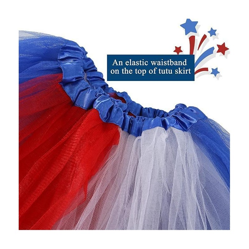 - 4th of July Costume Tutu Skirt: The 3 layers tulle Independence Day red blue white tutu skirt is made of polyester, bright, suitable for the Independence Day theme, with an elastic waist size of 50-102 cm/ 19.7-40 inches, the length 40cm /15.7 inches; Perfect for parties or dress-up fun, allows free movement for dancing
