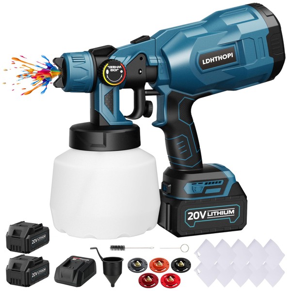 LDHTHOPI Cordless Paint Sprayer, 1200ml Paint Sprayer Gun Battery Powered, 5 Copper Nozzles, 3 Spray Patterns, 10 Funnel Paper for Wall, Fence, Metal, Floor