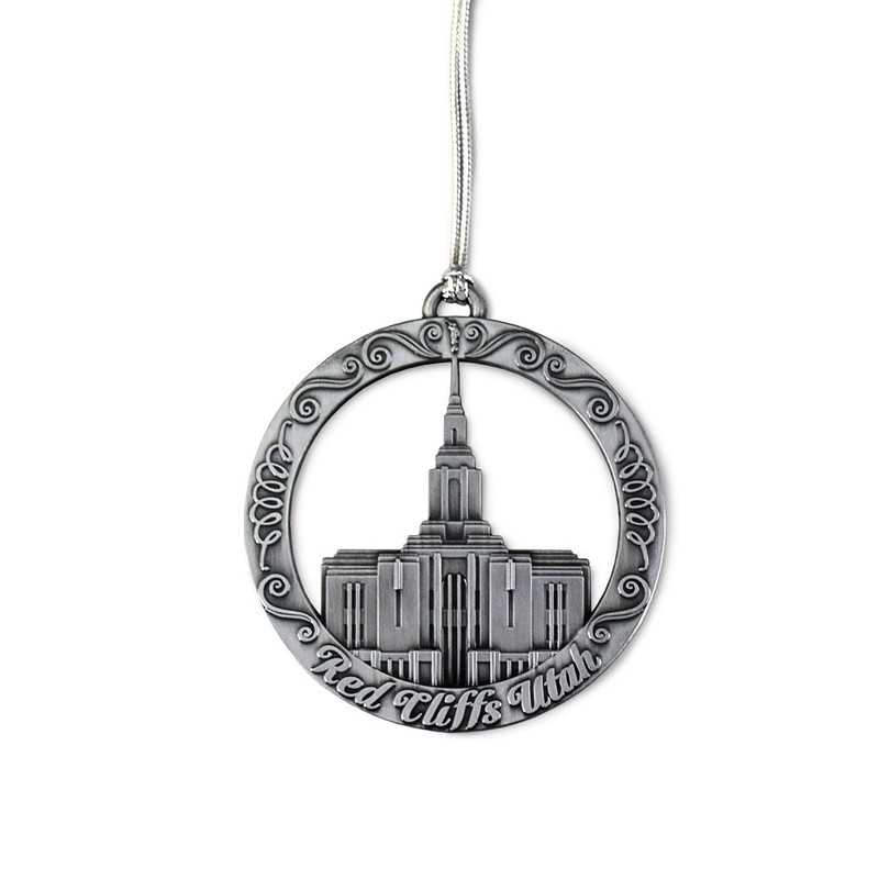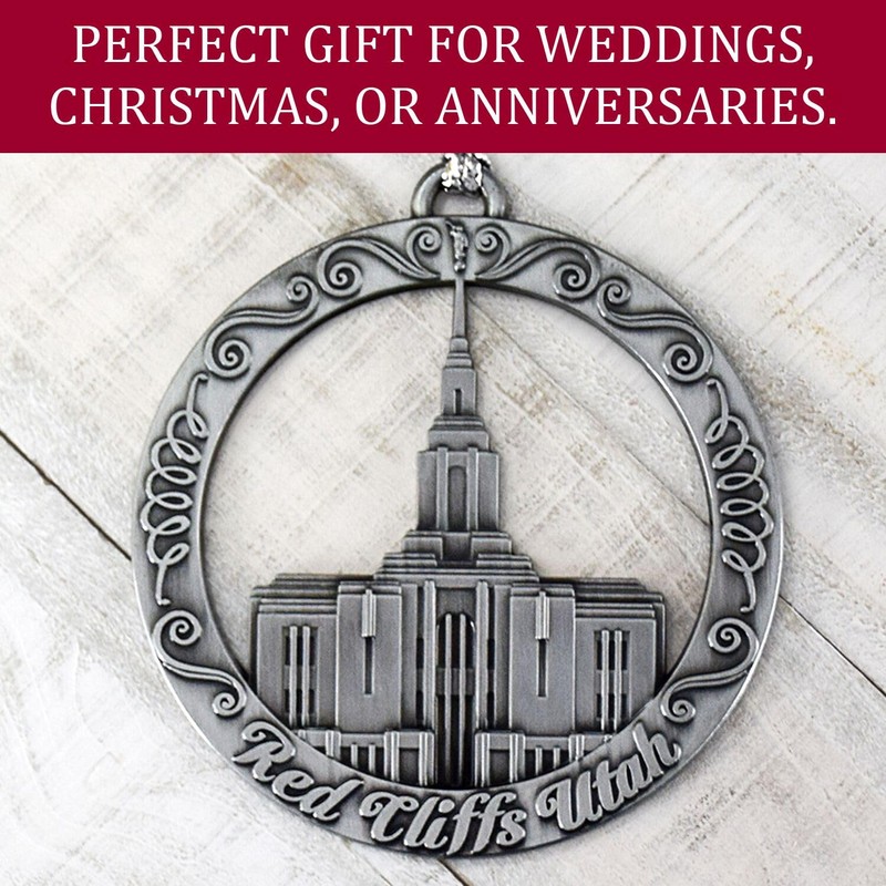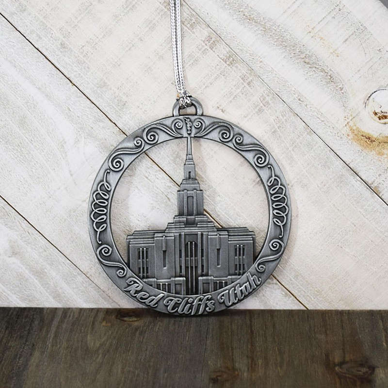 - ELEGANT TEMPLE GIFT ORNAMENT - Our 3” LDS temple ornament captures the beauty of the Red Cliffs Utah temple with intricate detailing, a timeless antique silver finish, and a silver ribbon.