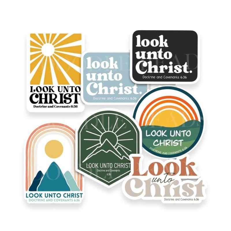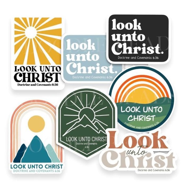 - Inspirational Designs: These 7 trendy vinyl sticker designs featuring the 2025 LDS Youth Theme "Look Unto Christ" with scripture from Doctrine & Covenants 6:36 will inspire youth.