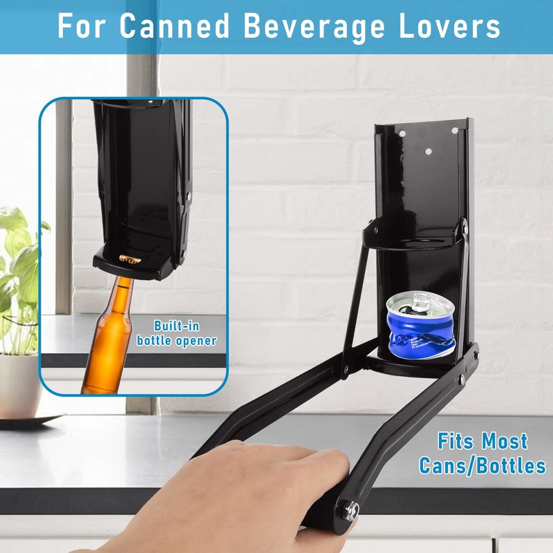 - Can Crushers for Recycling: This can crusher effortlessly crushes soda cans, beer cans and plastic bottles. It is a must-have tool for efficient recycling at home and business. Besides, with a built-in bottle opener, there is no longer any fear of not being able to find a bottle opener