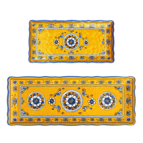 Le Cadeaux Melamine 10 x 5 inch Biscuit Tray and 15 x 6 inch Baguette Tray Serving Set, Toscana