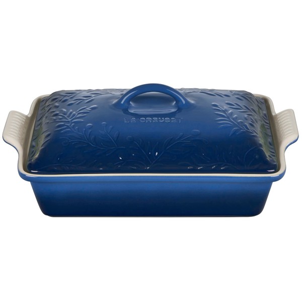 Le Creuset Olive Branch Collection Stoneware Heritage Covered Rectangular Casserole, 4 qt., Marseille with Embossed Lid
