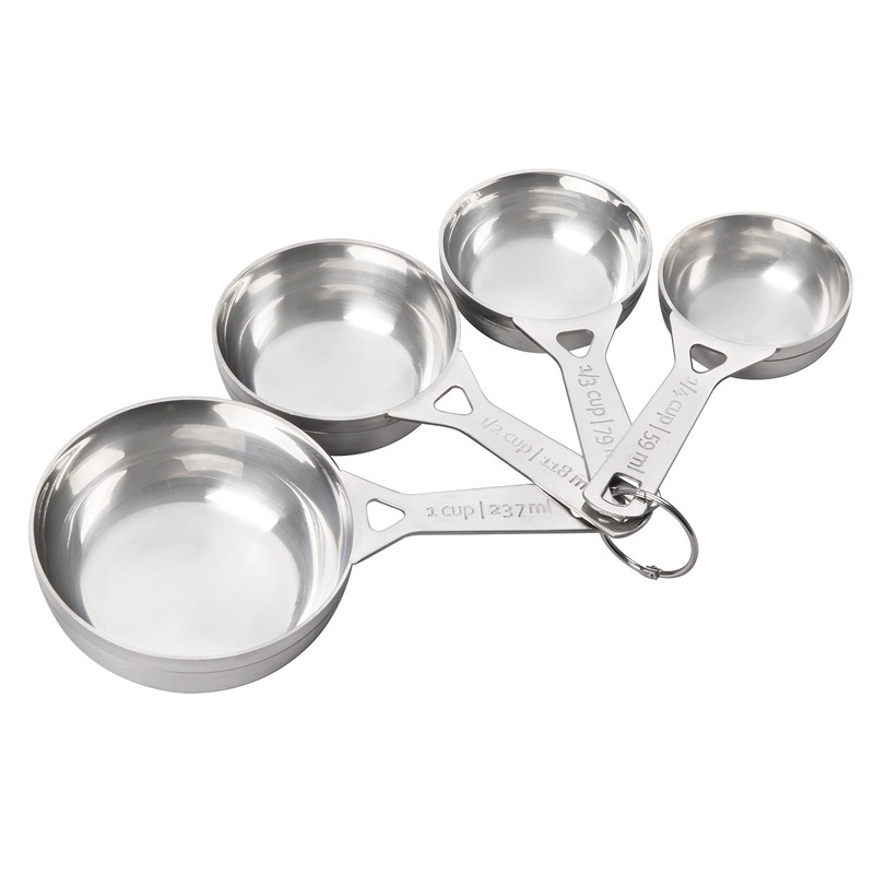 - 4 piece set includes: 1/4, 1/3, 1/2, and 1 cup sizes