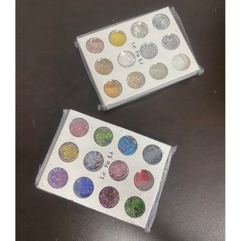 - The glitter sequins set contains 48 boxes with different colors and shapes. 12 boxes loose mixes glitter powder in 12 colors,12 boxes of small sequins of the same size, 12 boxes multitude of shapes and sizes of chunky glitter. 12 boxes of small sequins of the butterfly size, These versatile little boxes of magic have so many uses and will amaze you with how sparkly it is!