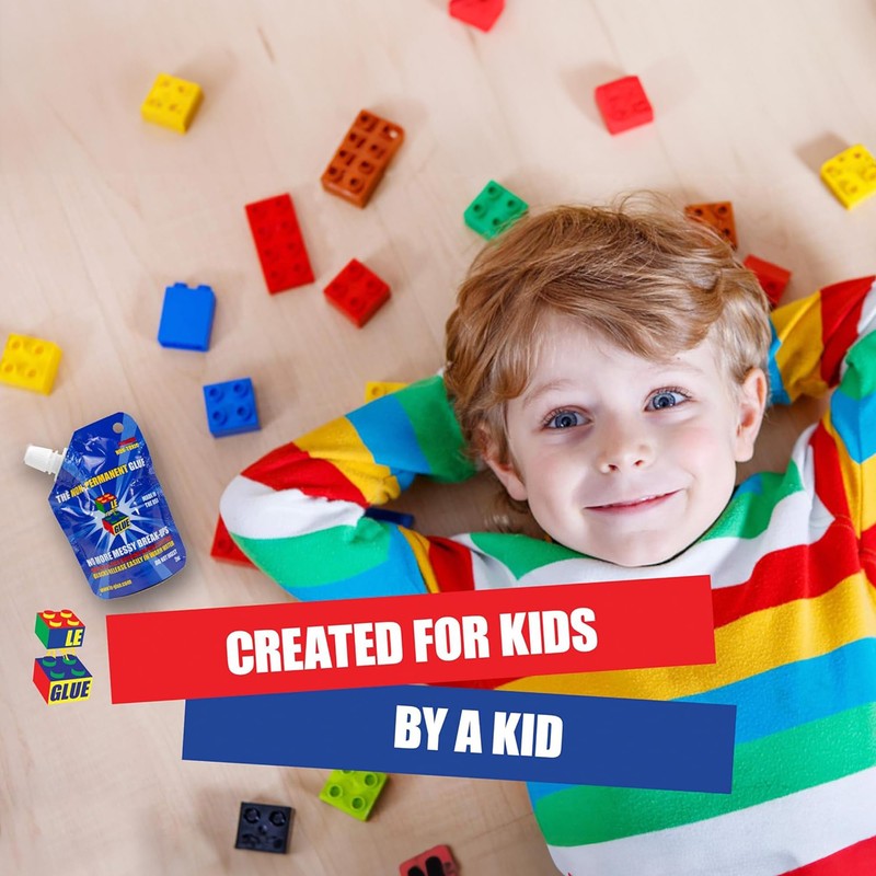 - Made for kids, by a kid: Created by 8-year-old Tripp Phillips of Dalton, GA, Le glue was made to bond Lego pieces temporarily, then detach to rebuild. With his father, it was developed and later gained an investment after a successful pitch on Shark Tank.