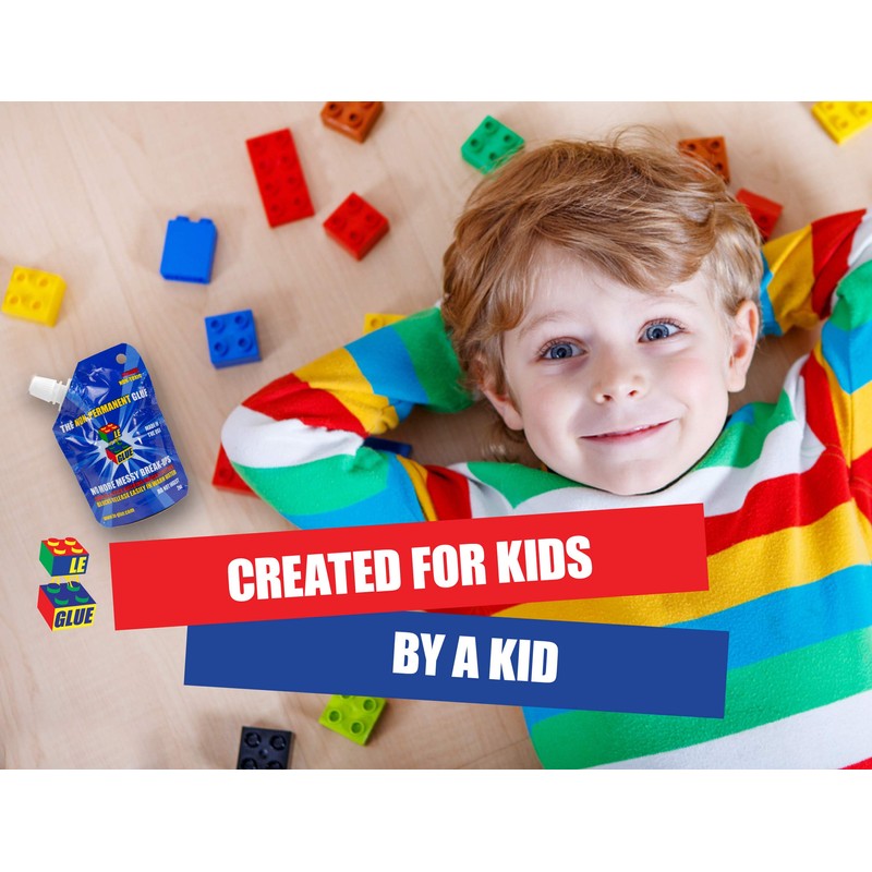 Le Glue Temporary Glue – Non-Permanent Adhesive for Plastic Building Blocks, No More Messy Break-Ups – Safe, Non-Toxic Formula – As Seen on Shark Tank, Created for Kids, by a Kid
