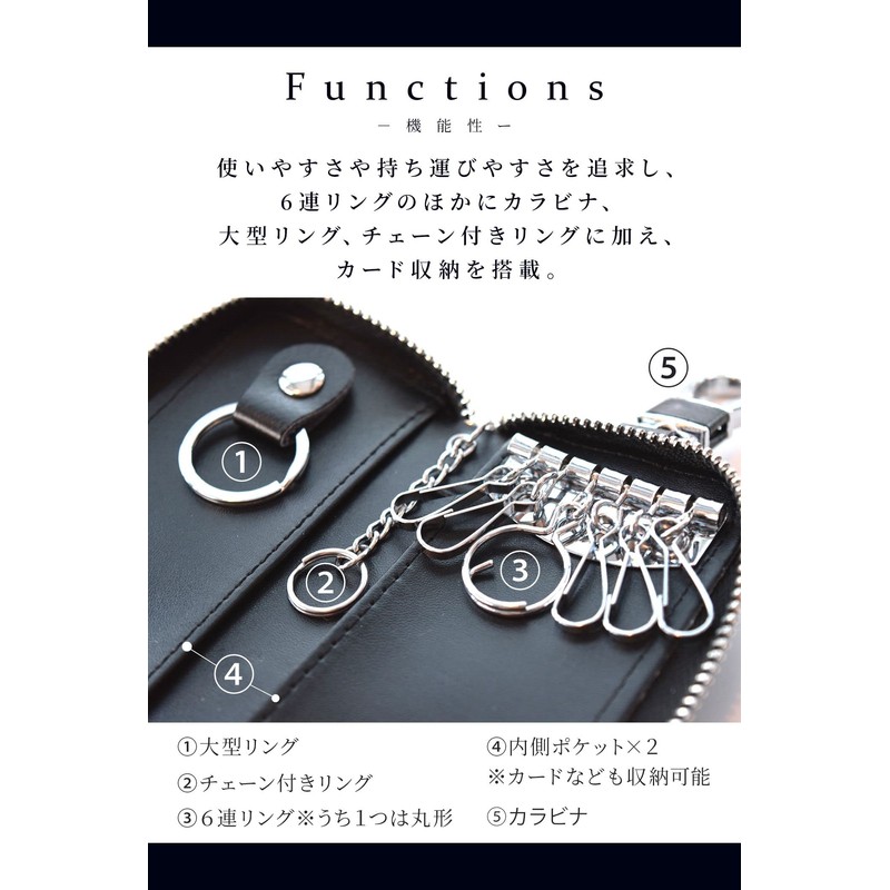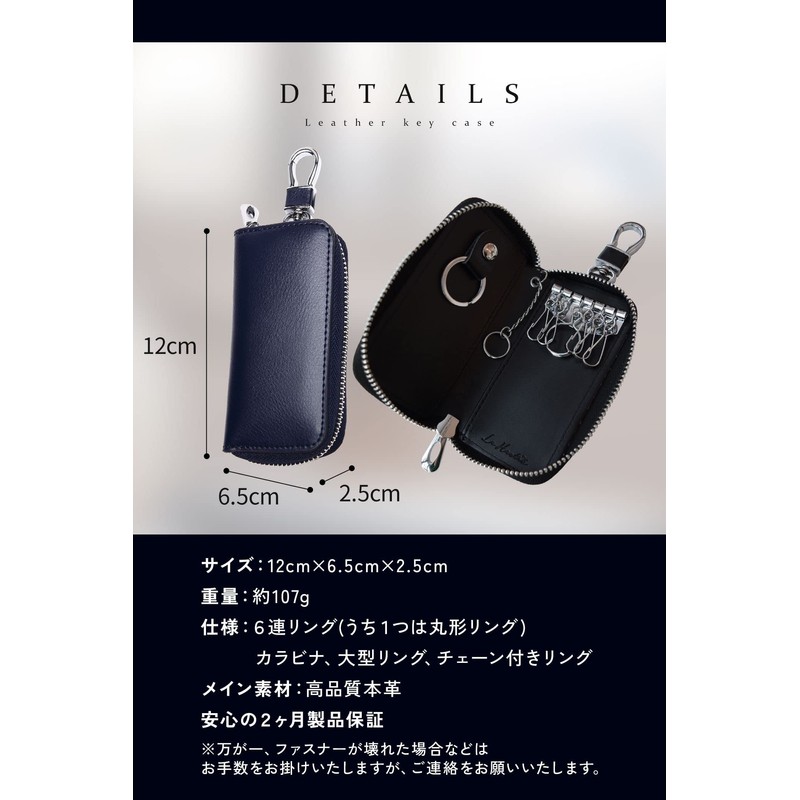- A high-quality genuine cowhide leather key case thoroughly brimming with simple yet sophisticated luxury. Yet it also allows storage of even smart keys and card keys without becoming unwieldy.