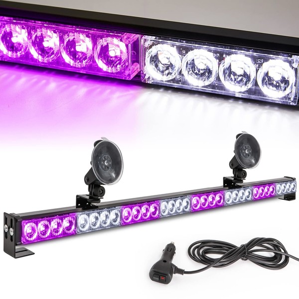 White/Purple Emergency Strobe Light Bar 36 In 13 Flash Patterns Traffic Advisor Warning Hazard Windshield Safety Lights Bar with Cigar Lighter for Vehicles, Truck (35.5 Inch, White/Purple 32 Led)