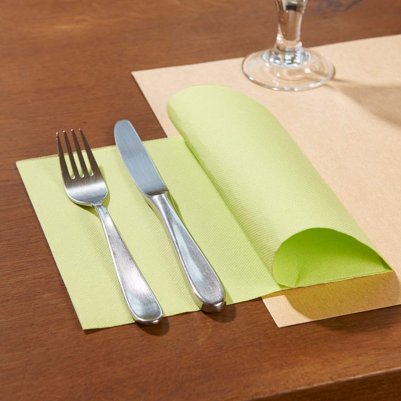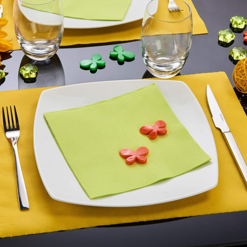 - Unleash your creativity: Anise green is a soothing colour that invites you to relax and feel good. Ideal for meals with friends or family. For a beautifully set table, you can combine the napkins with a yellow and green gradient, with a yellow tablecloth and a table runner in the same shades.
