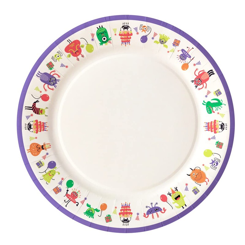- Little friends for your party: the Little Monster plates 23 cm are decorated with original illustrations, colourful and cute, large enough and suitable for serving food. The pattern can be combined with plain decorations for girls and boys. The pack contains 10 plates. The set can be complemented with other products with the same pattern: tablecloth, placemats, mugs, napkins, goodies containers and guest keepsake bags.