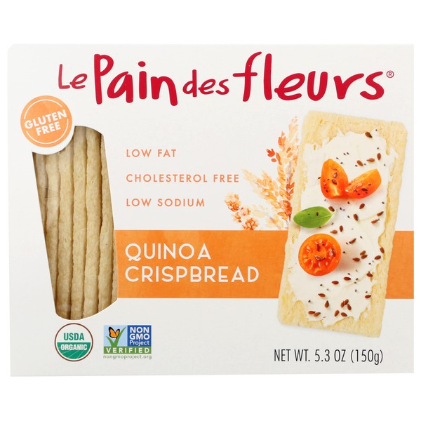 Le Pain Des Fleurs Organic Quinoa Crispbread, 4.41 Ounce -- 6 per case. Le Pain des Fleurs Quinoa Crispbreads are reminiscent of the Bolivian peaks from where our Quinoa is grown. Elevate your tastebuds with the highest Quinoa content of any crispbread/cracker available. Made with 100 Percent Organic Ingredients and Fair Trade Quinoa in a dedicated gluten free factory. Le Pain des Fleurs crispbreads are the perfect addition to any lunch, dinner party or as a quick bite in your kids backpack. Le Pain des Fleurs Buckwheat Crispbreads have a hearty crunch in every bite. With over 98 Percent buckwheat in each crispbread you can finally experience the remarkable flavor of this wholesome seed. Made with 100 Percent Organic Ingredients in a dedicated gluten free factory. Le Pain des Fleurs crispbreads are the perfect addition to any lunch, dinner party or as a quick bite in your kids backpack.