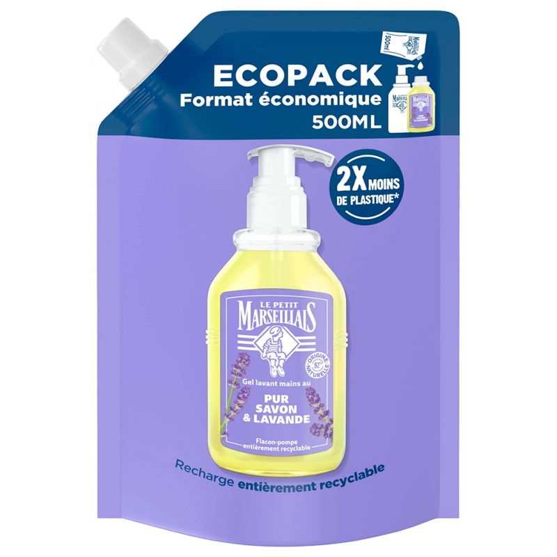 This product refills your bottle of Le Petit Marseillais Gel Lavant Mains Pur Savon & Lavande 300 ml one and a half times.